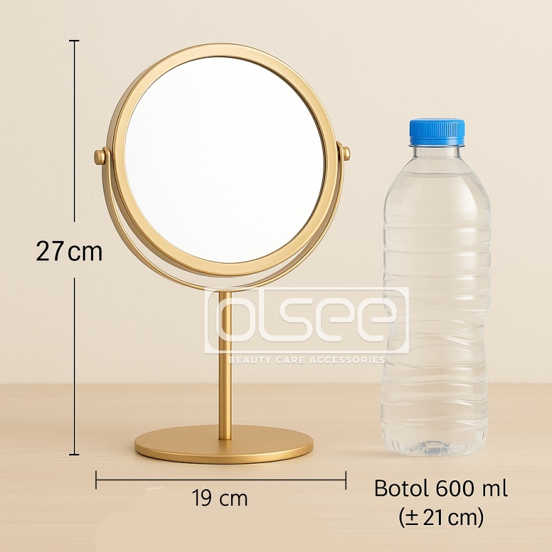 OLSEE - Cermin Make Up Meja Aesthetic 2 Sisi Standing Mirror Korea Gold Kaca Rias Bulat Elegan Cermin Emas Minimalis S1226
