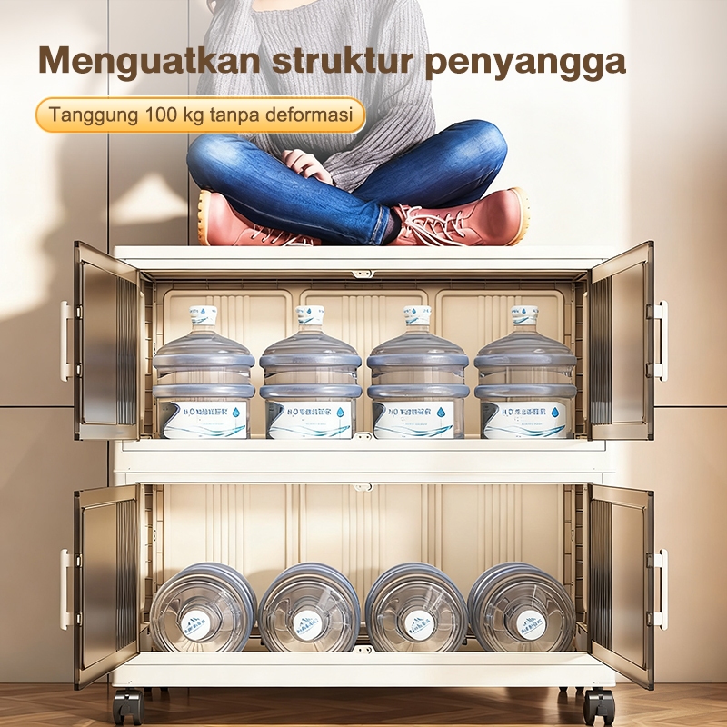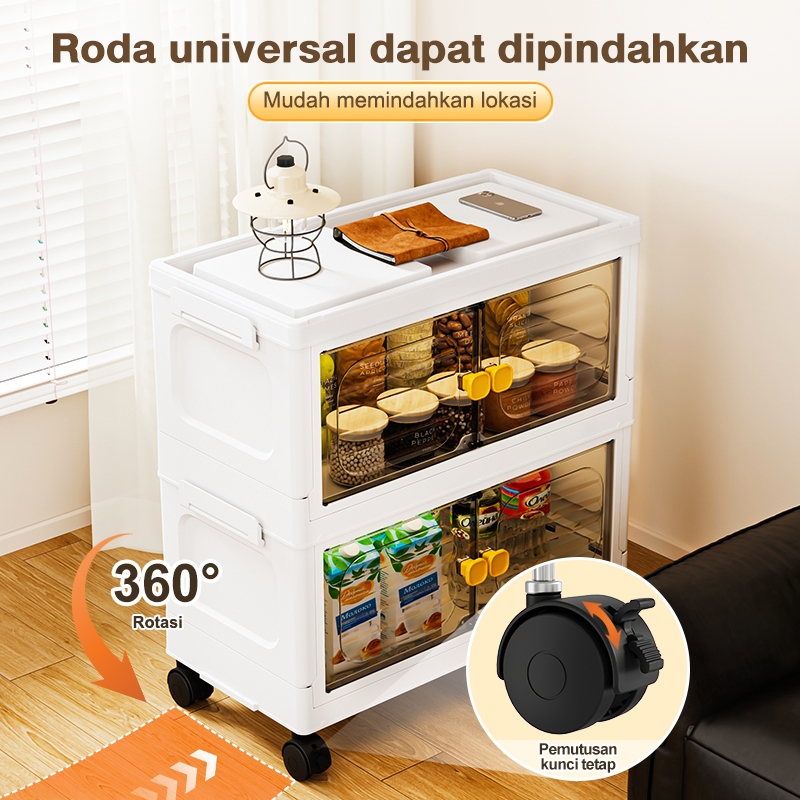 IVLISA Lemari Plastik Lipat Penyimpanan Serbaguna 3/4/5/6 Susun Rak Baju Multifungsi, Organizer Hemat Ruang, Katrol Senyap, Anti Debu