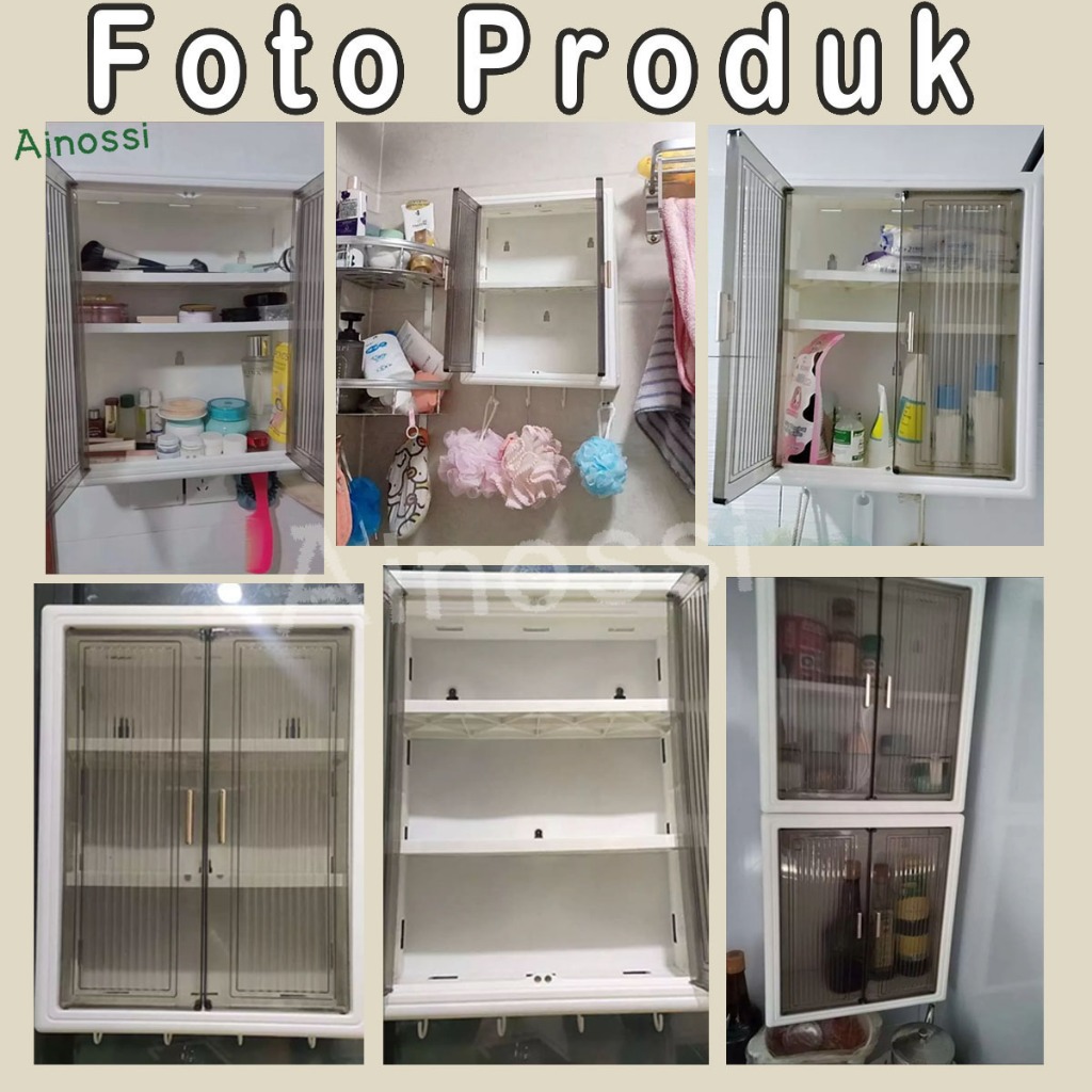 AINOSSI Lemari Plastik Kamar Mandi Dinding Aesthetic Kabinet Kamar Mandi Tertutup Kotak Rak Kamar Mandi Lemari penyimpanan dapur