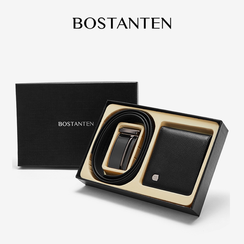 BOSTANTEN Set Kombinasi Dompet Dan Sabuk Kulit Sapi Pria (Kotak+Tas Kado)