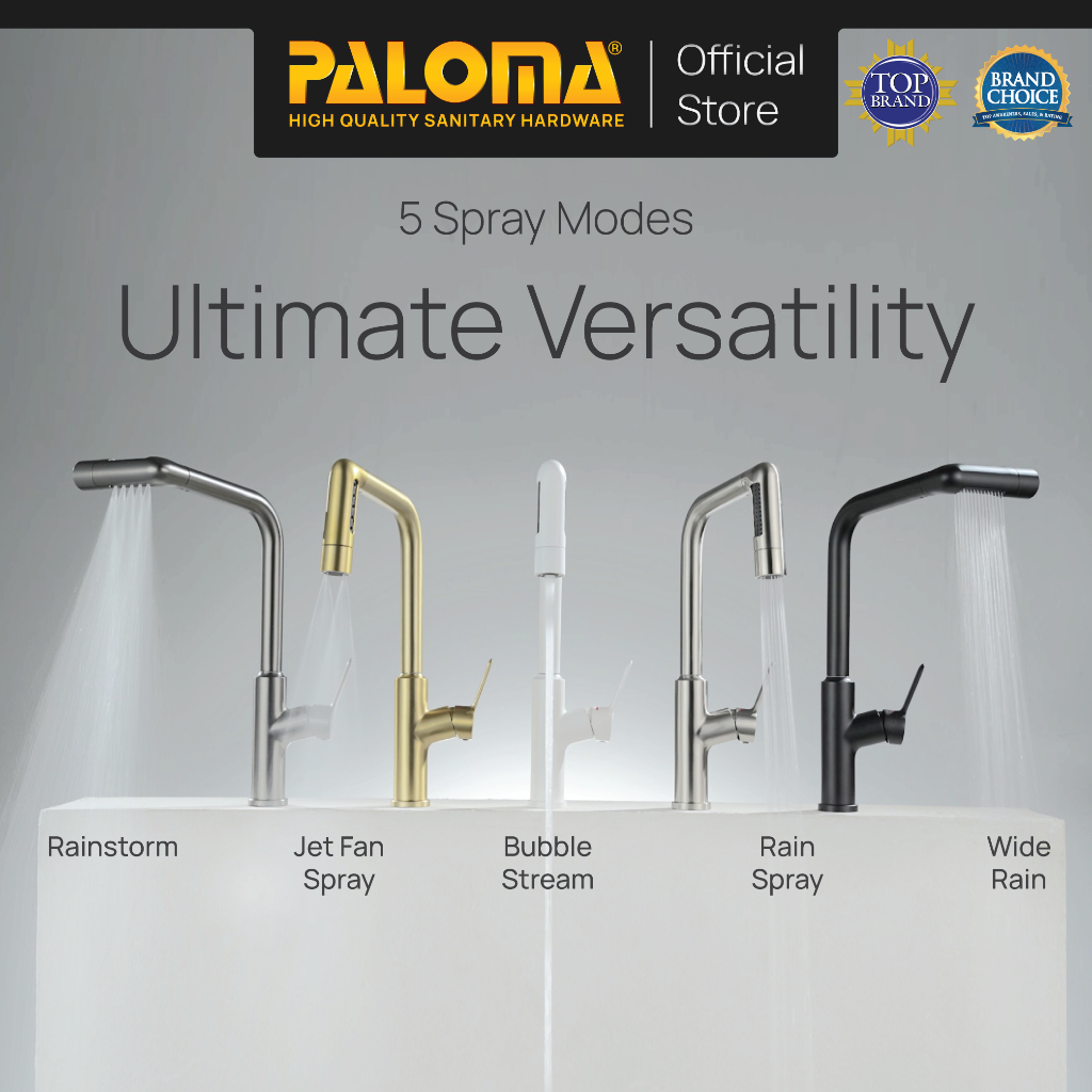 PALOMA FCP 2653 Keran Dapur Cuci Piring Fleksibel Tarik Kran Air Sink Flexible Pull Out Down Mixer Panas Dingin Stainless Steel SUS 304