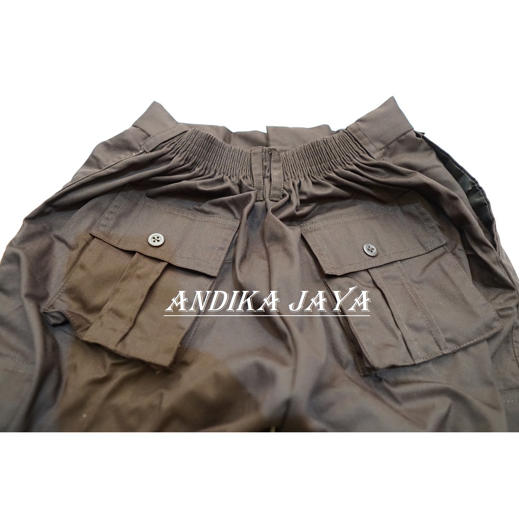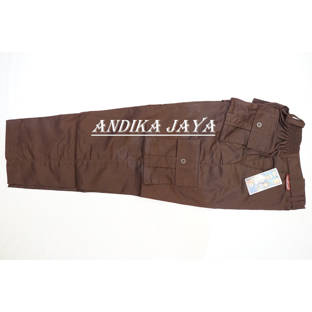 Celana Panjang Karet Coklat Pramuka Siaga & Biru HW Kempol TK SD SMP Putra Putri Seragam Sekolah Andika Jaya