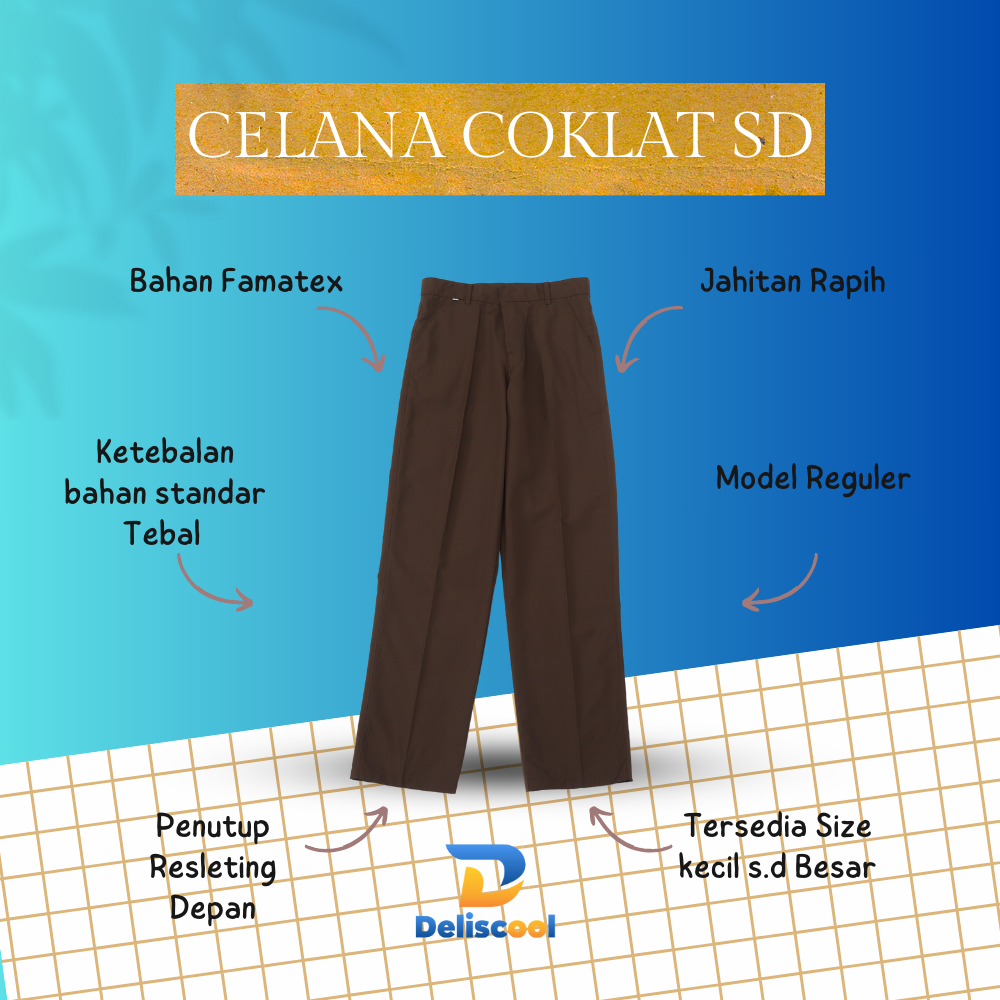 Seragam SD Celana Panjang Coklat - Seragam Pramuka - Seragam Sekolah - Celana SD