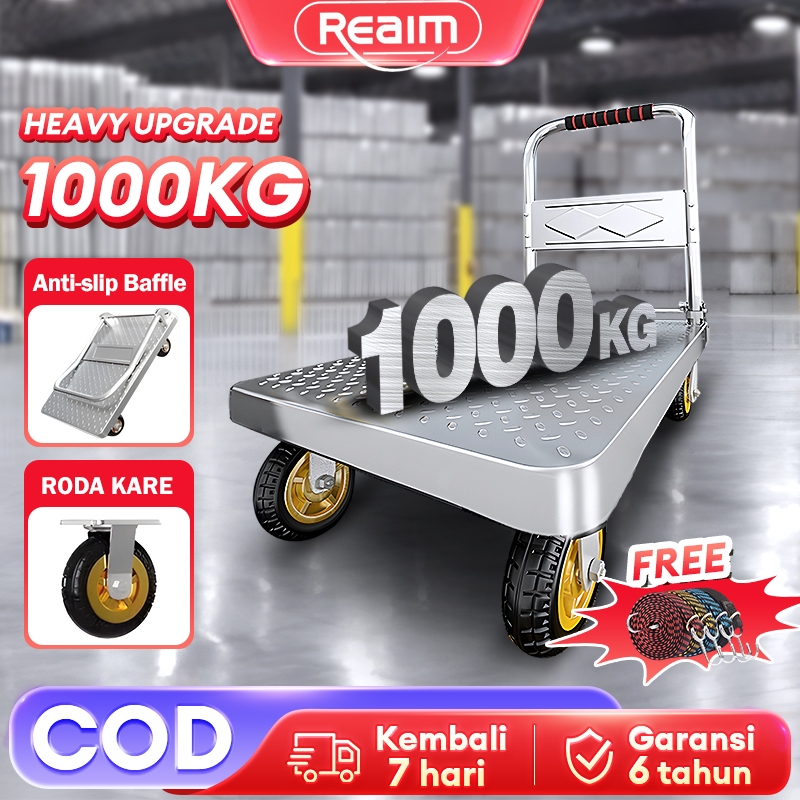 Reaim Handtruck Troli Barang Lipat Hand Truck Folding Cart Silent Wheel Troli Angkut Handtruck besi troli dorongan lipat barang