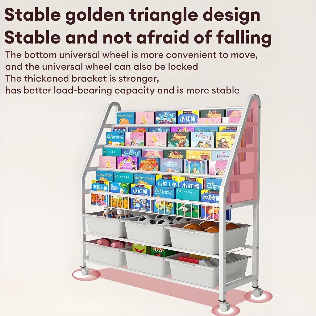 Rak Buku Susun Serbaguna Tempat Rak Buku Anak Rak Portable Roda Rak Mainan Rak Roda Toy Storage