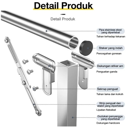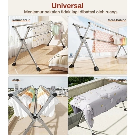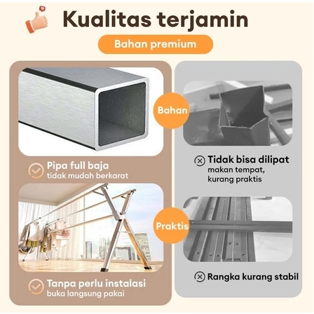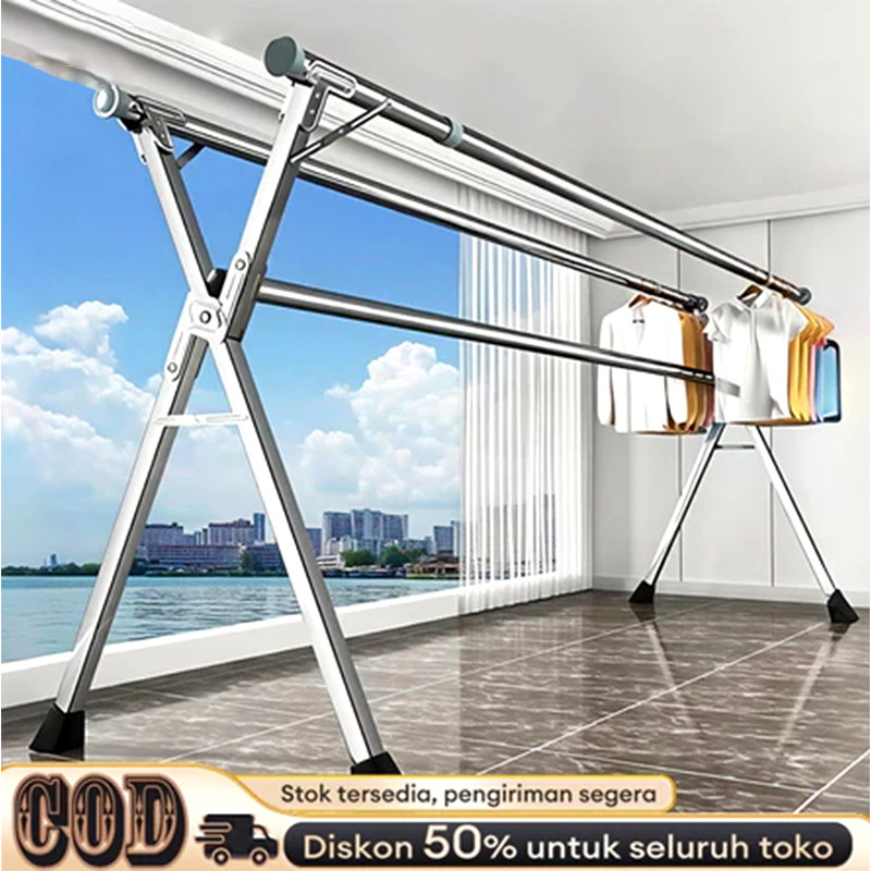 Jemuran Baju Stainless Steel 240cm Tahan Karat Jemuran Lipat Portable Pengering Pakaian