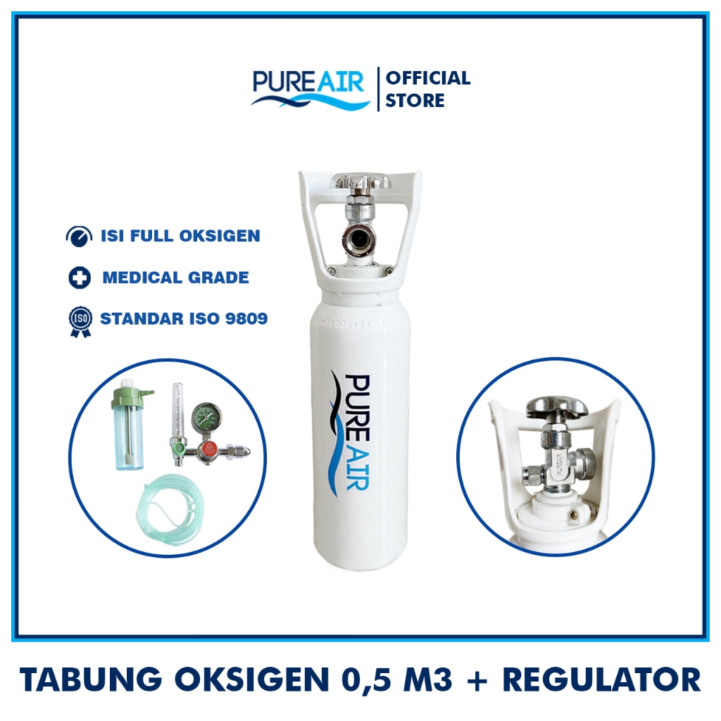 Pureair Tabung Oksigen 0,5 M3 Set 3in1 (Tabung+Isi Oksigen+Regulator)