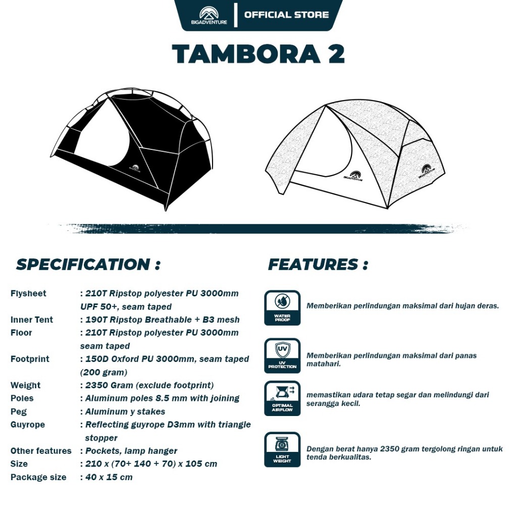 Tenda Camping Bigadventure Tambora Series - Tenda 2 Person Kapasitas 2 Orang Anti Air Anti Angin