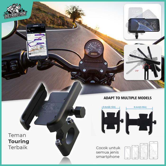 YUK BELI ! PHONE HOLDER HP DUDUKAN TEMPAT PENYANGGA STAND HANDPHONE STANG DI MOTOR NB12 - HITAM ORI
