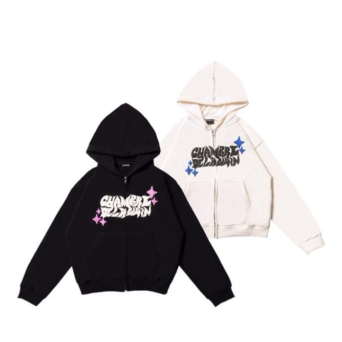 Chambre de la vain Hoodie boxy basic Halfzip Black White Forever Pil