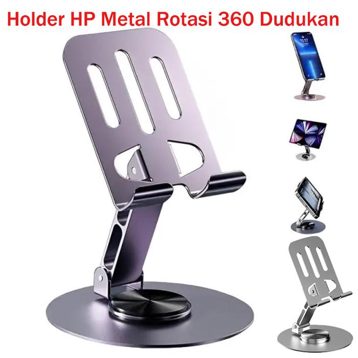 YUK BELI ! HOLDER HP METAL ROTASI 360 DUDUKAN PONSEL BESI PHONE STAND HOLDER TABLET MULTIFUNGSI - GRAY ORI