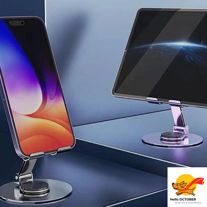 YUK BELI ! METAL PHONE HOLDER ROTARY DUDUKAN HP PONSEL BESI ALUMINIUM MEJA 360 DERAJAT PONSEL MOTOR HANDPHONE - UNGU ORI