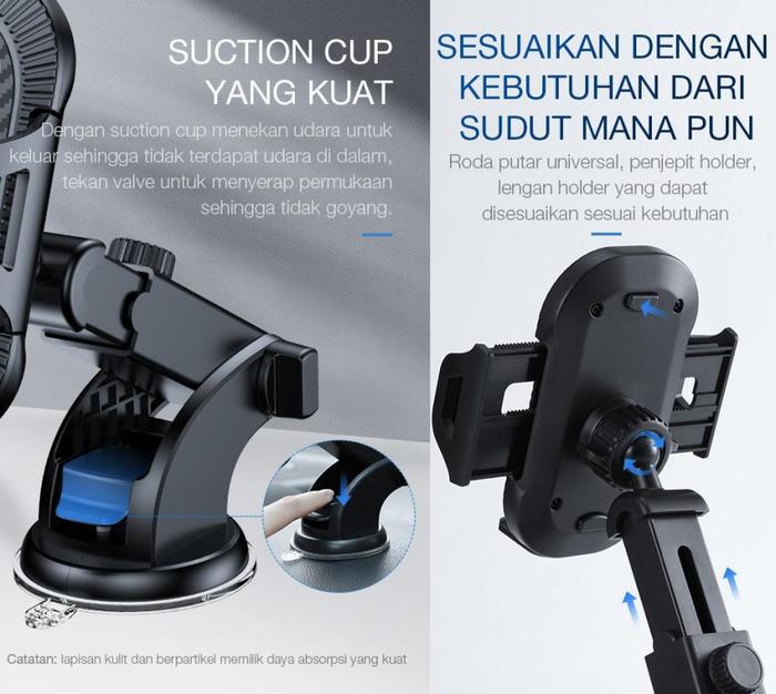 YUK BELI ! CAR HOLDER MOBIL ROBOT RT-CH12 STAND HP TEMPAT DUDUKAN HANDPHONE GPS - HITAM ORI