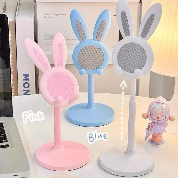 YUK BELI ! STAND HOLDER PHONE KELINCI CUTE FOLDING DEKSTOP UNIVERSAL PORTABLE - HITAM ORI