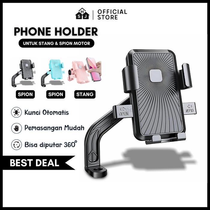 YUK BELI ! HOLDER HP STANG MOTOR PINK / HOLDER MOTOR SPION / HOLDER PHONE / DUDUKAN PONSEL - HITAM (SPION MOTOR) ORI