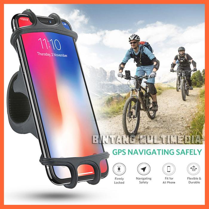 YUK BELI ! HOLDER HP SEPEDA MOTOR BRACKET DUDUKAN HANDPHONE SILIKON ELASTIS P019 - HITAM ORI