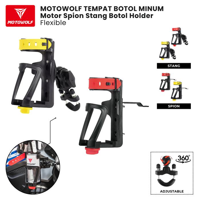 YUK BELI ! MOTOWOLF TEMPAT BOTOL MINUM MOTOR BOTTLE HOLDER DUDUKAN AIR STANG SPION FLEXIBLE MDL3530 - SPION, MERAH ORI