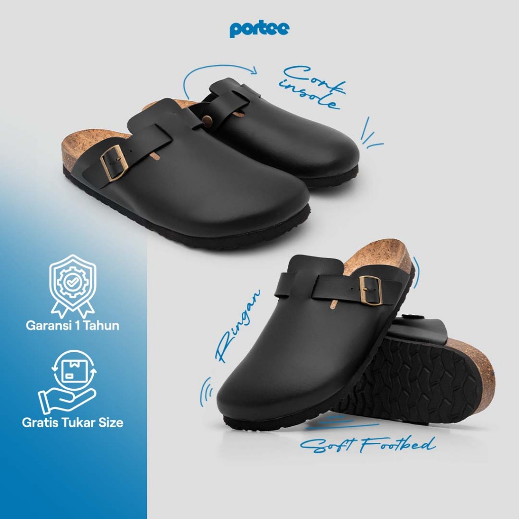 Sandal Pria Portee London Black – Slop Clog Nyaman | Santai Liburan | Sandal Cork | Men Sandal