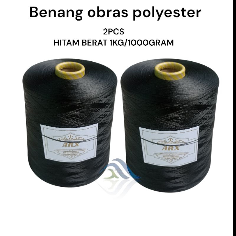 ARISTEX - 2pcs Benang obras POLYESTER hitam ( 1kg/1000gram)