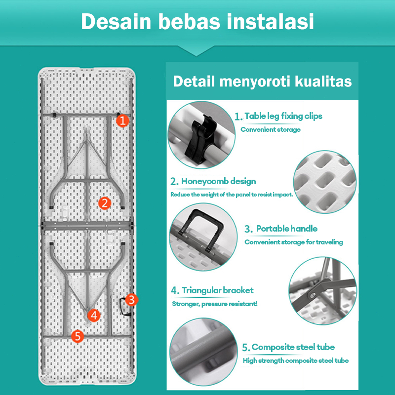 Meja Lipat Portable Meja Lipat plastik Meja Lipat Outdoor Meja Serbaguna besar Makan Meja meja lipat jualan