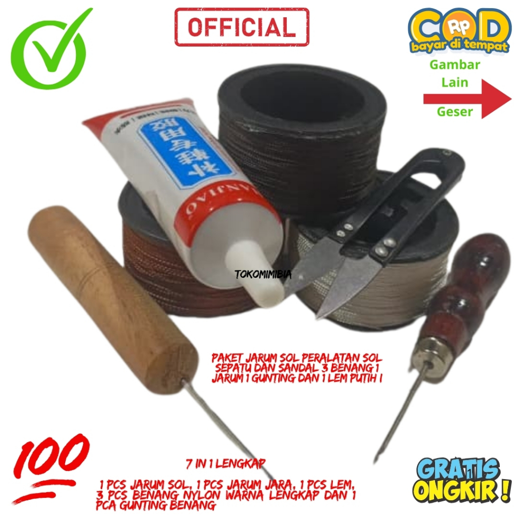 Paket Lengkap Alat Sol Sepatu / Jarum Sol Sepatu ting / Benang Nilon Sol Sepatu Lem Putih B1