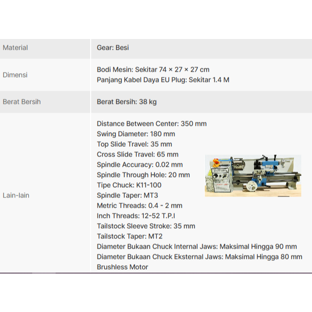 Mesin Bubut Mini Lathe Wood Working DIY 550W - HL-0618PTCC