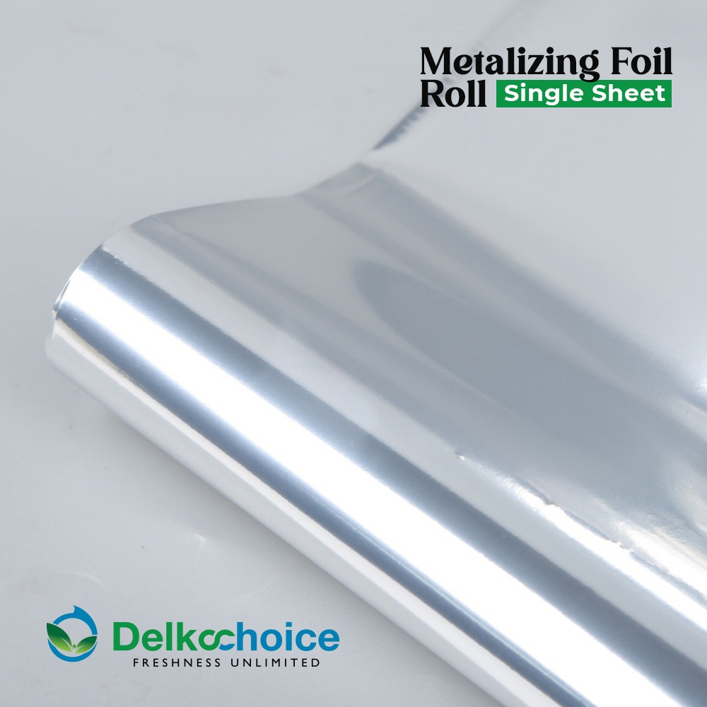 Alumunium Metalizing Foil Single Sheet Film Roll Kemasan FoodGrade DELKOCHOICE
