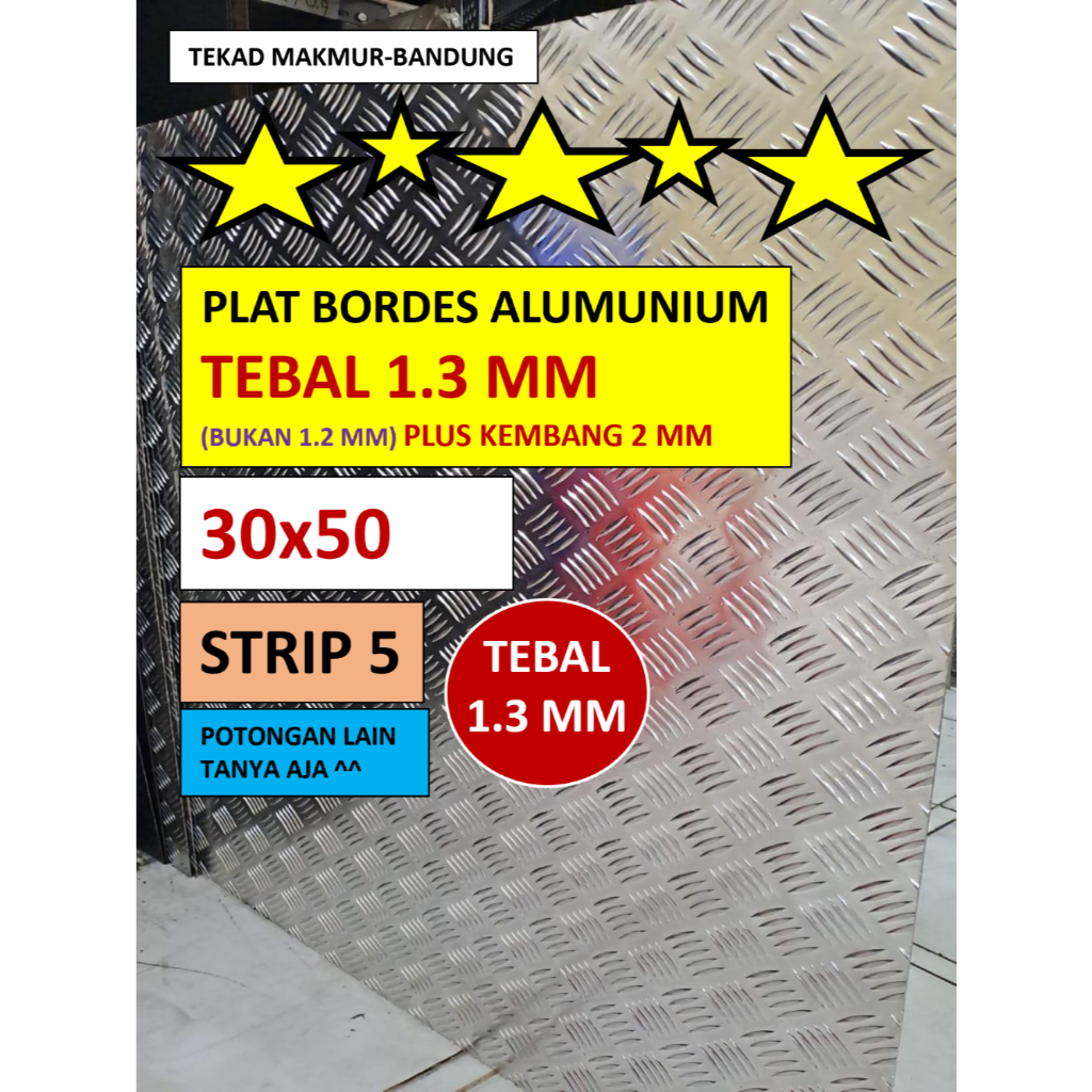 Plat Bordes Alumunium - 30x50 - Strip 5 - Tebal 1.3 mm + Kembang 2 mm