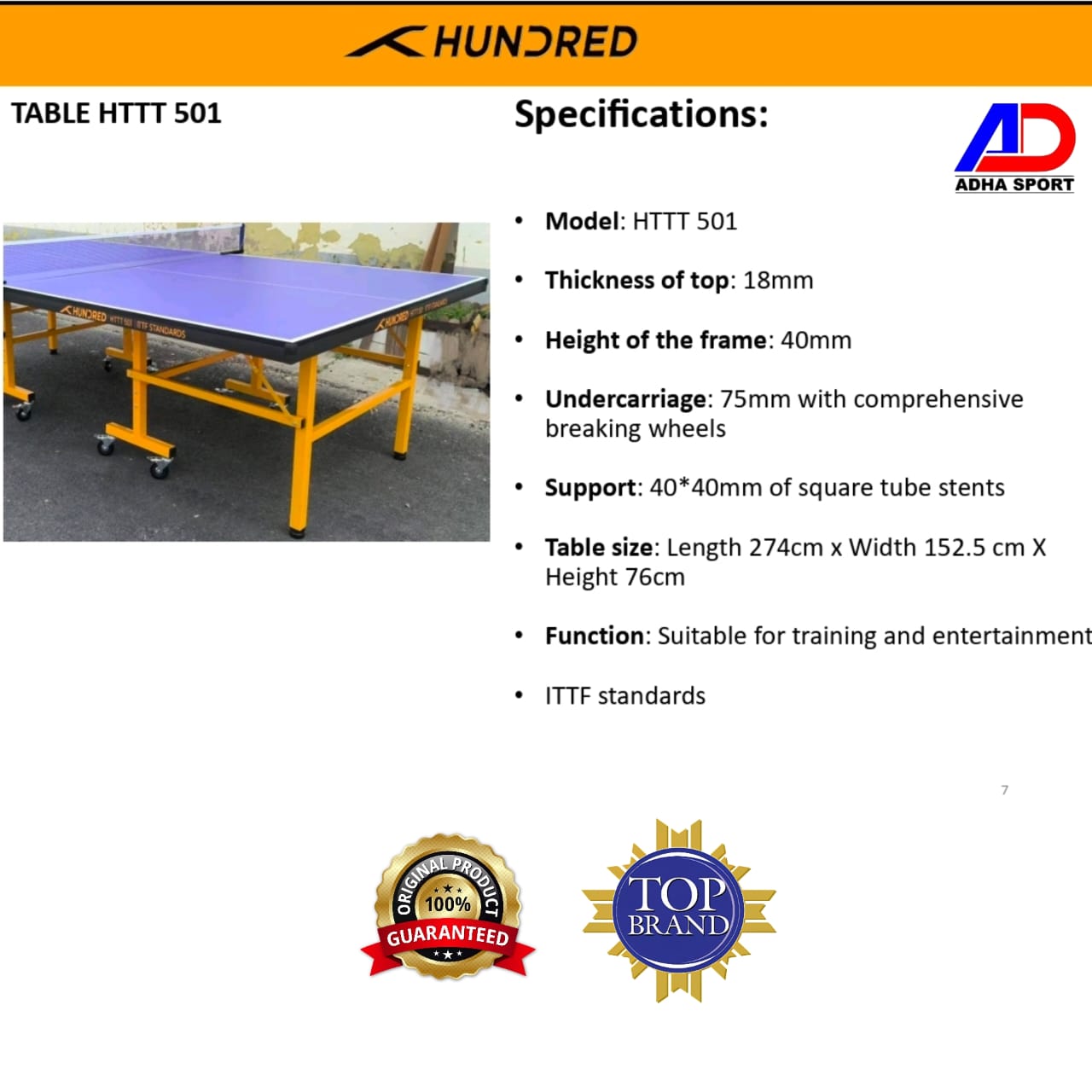ORIGINAL - Meja Pingpong Tenis Meja HUNDRED HTTT 501 - 18mm