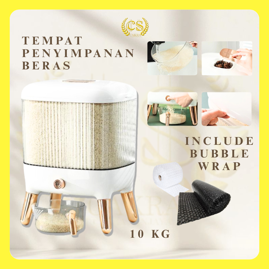 Dispenser Beras Sultan Mewah 10KG dengan takaran 1liter Container Besar Mewah Anti Kutu Tempat Beras