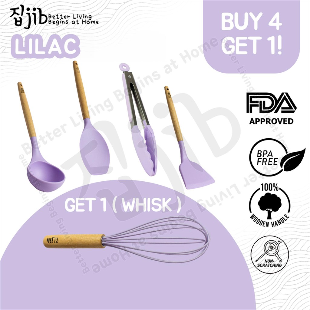 JIB Utensil Silicone Buy 4 Get 1 / Bundle Utensil Silikon / Sutil Silikon Tahan Panas Gagang Kayu / Kitchenware