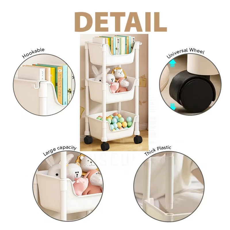 Roxart Rak Susun Serbaguna 3-5 Tingkat Rak Kamar Mandi Bahan Plastik Portable | Rak Dapur Troli | Rak Roda Buku Mainan Penyimpanan