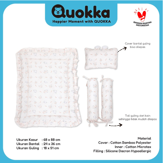QUOKKA Matras Tidur Bayi Bed Cover Bantal Guling set Alas Tidur Bayi Lembut