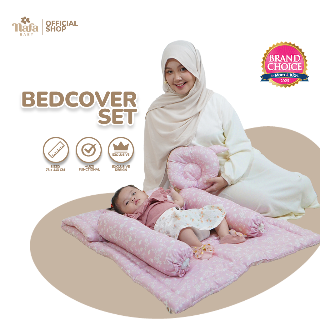 NAFA BABY - Bedcover Bayi Lembut Set Bantal Guling Katun | Alas Tidur Bayi Cocok untuk Kado Lahiran Free Tas Penyimpanan