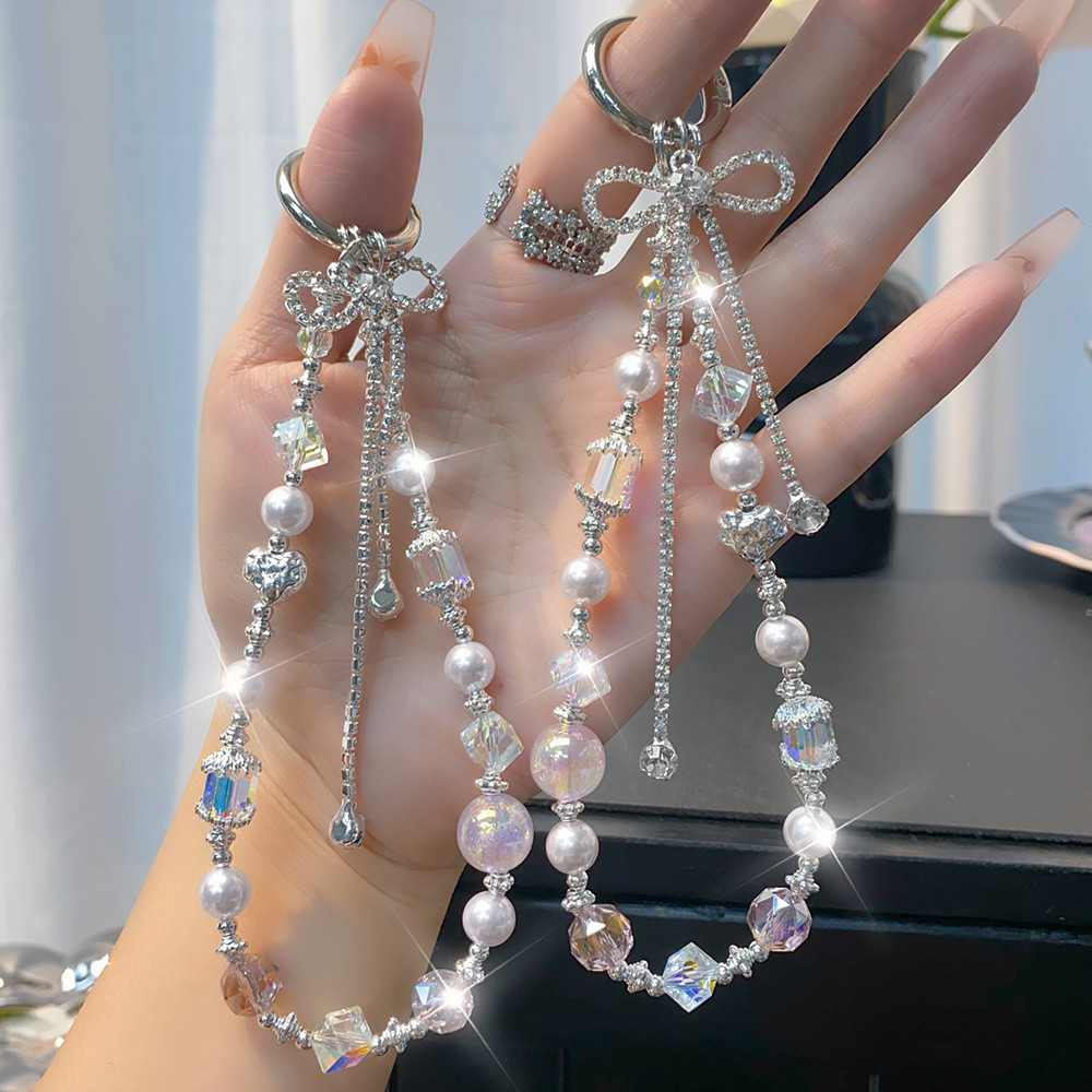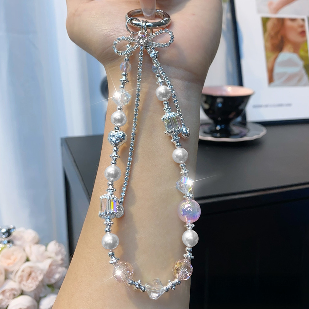Casing Hp Untuk White pearl metallic bracelet CM10 Aksesori Lanyard Casing Ponsel Rantai Kristal Modis Liontin Anti-Hilang Gaya Serbaguna Tali 09 Gift-SS05