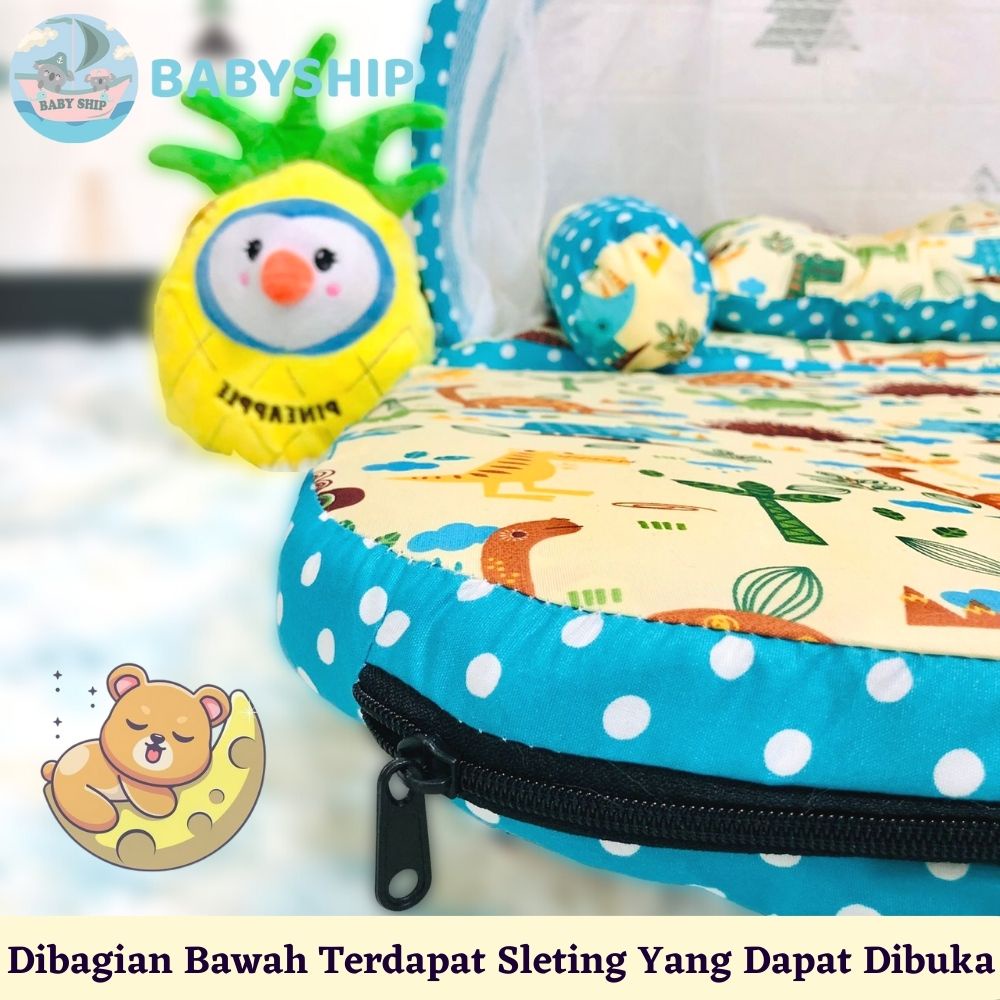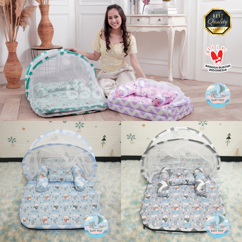 Kasur Bayi Kelambu Lipat – Tempat Tidur Bayi Set Bantal Guling + Free Tas Mika, Anti Nyamuk & Praktis Dibawa