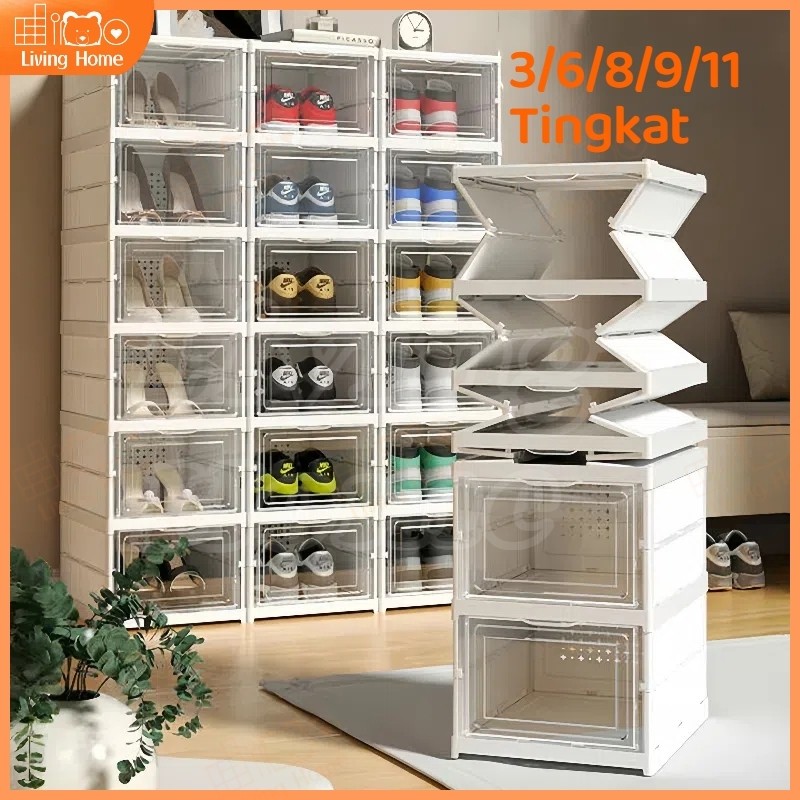[ 3/6/8/9/11 Tingkat ] Rak Sepatu Susun Tertutup / Rak Sepatu / Kotak Sepatu Lipat Transparant