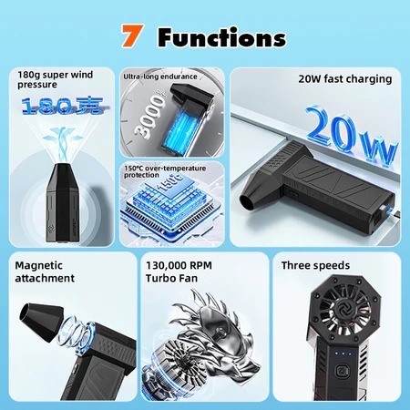 Mini Jet Fan Turbo/Mini Turbo Jet Fan Turbo Violent Fan 3 Gear Adjustable 140000RPM Wind Speed 53m/s Car Computer Cleaning Blower Tool