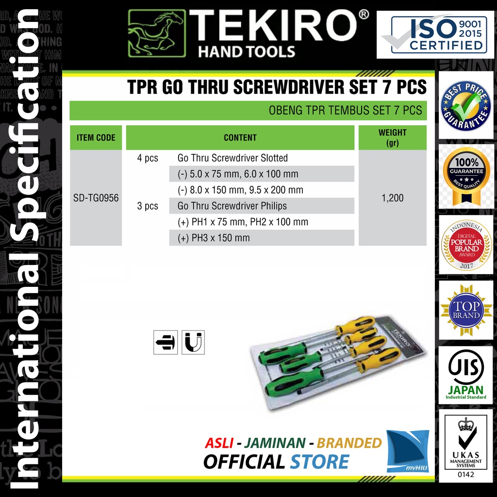 Obeng Tembus TPR Isi 7 pcs Anti Selip / Sulit Basah / Ujung Magnit - Go Thru Screwdriver Set TEKIRO