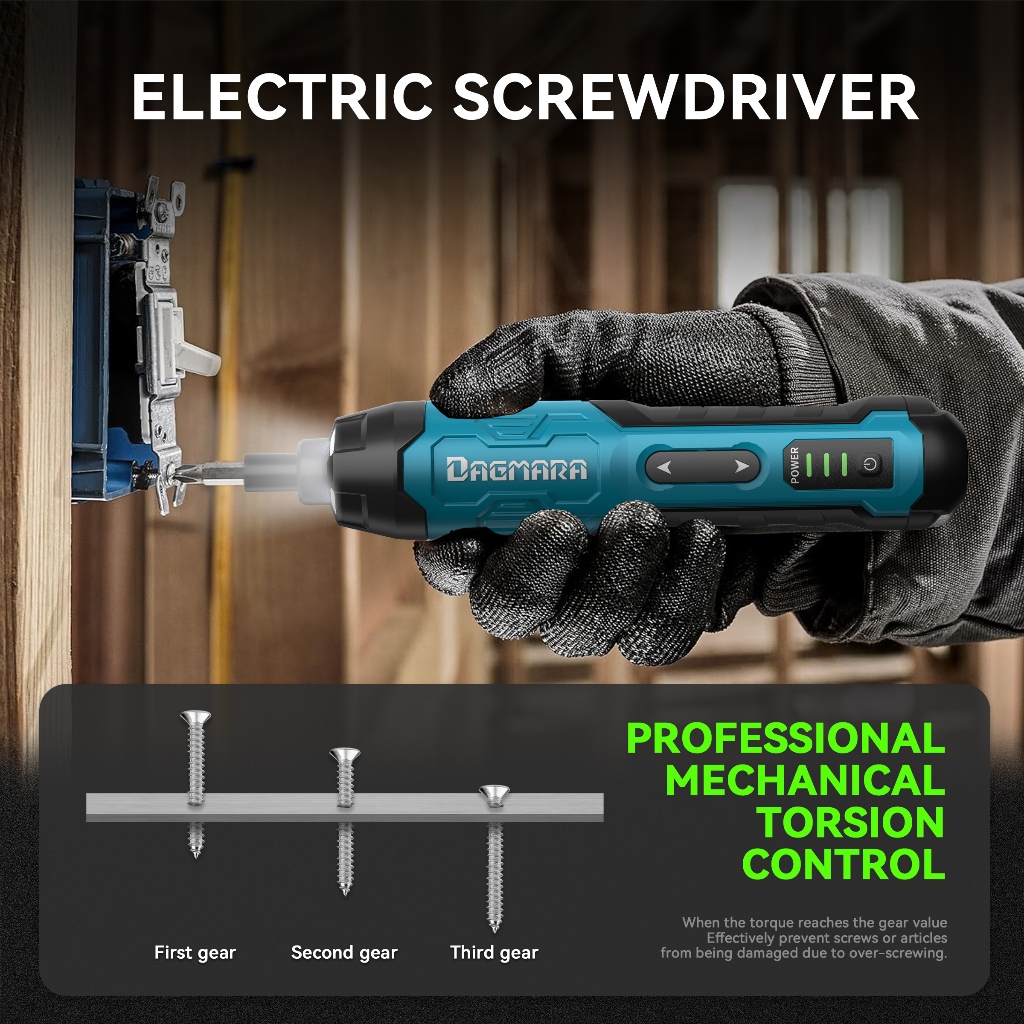DAGMARA Rechargeable 3.6V Cordless Screwdriver with Circuit Sensor Technology Includes 30pcs Bit Set, USB Charging Cable