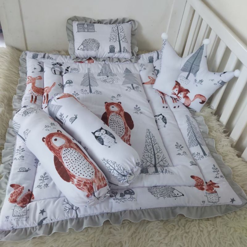 Set Bedcover Bayi dan Bantal Guling Bayi Alas Tidur Bayi Katun Lembut