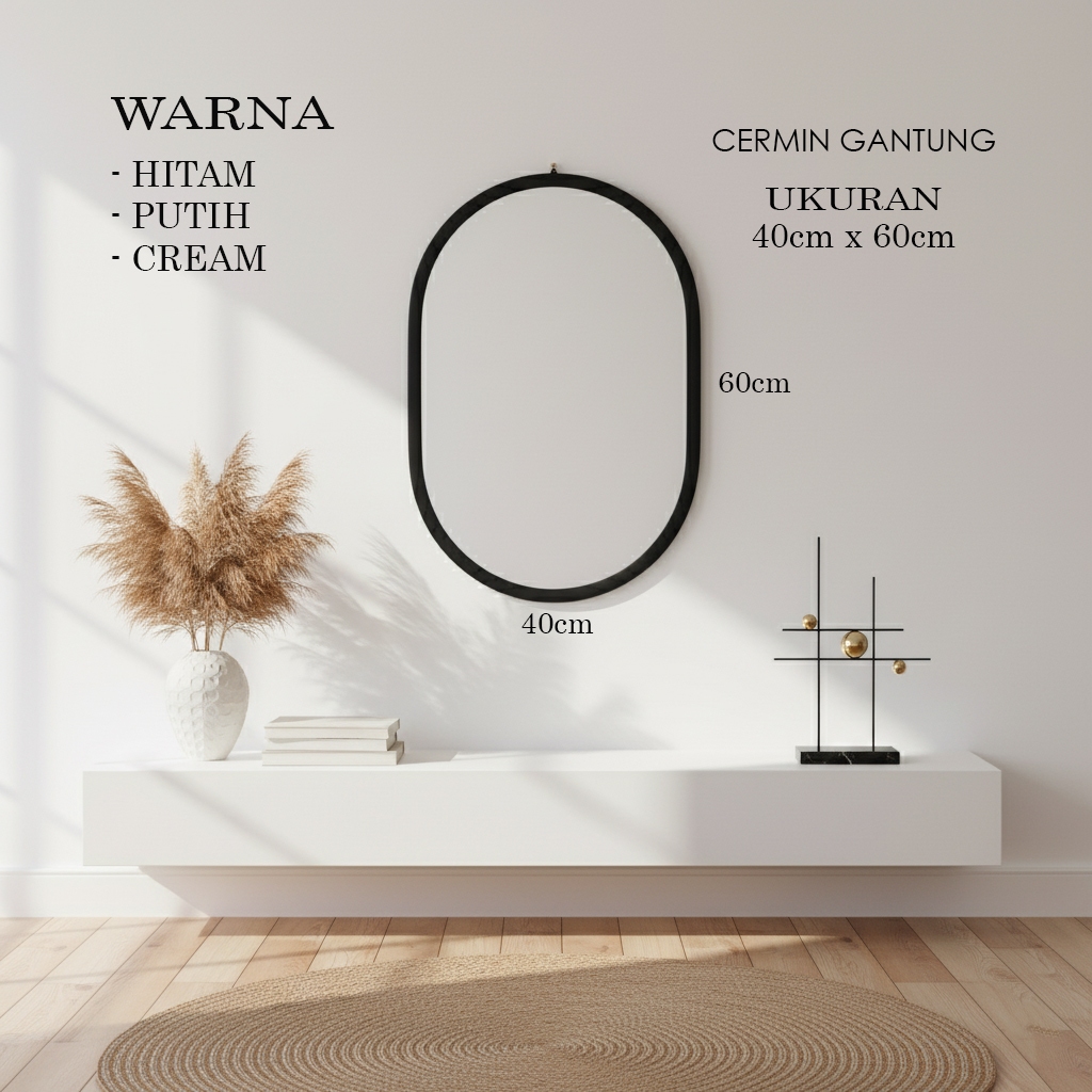 [ Free Packing Kayu ] CERMIN GANTUNG KAPSUL - CERMIN DINDING TERBARU - CERMIN AESTHETIC 40x85 cm