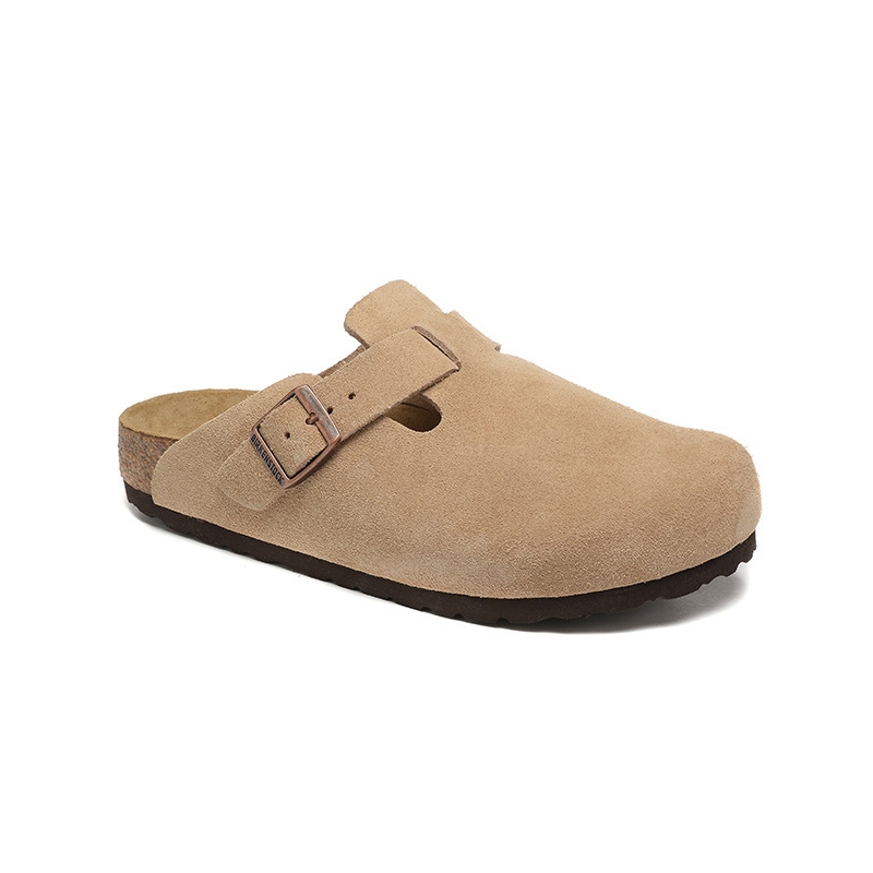 Birkenstock Boston Taupe Original Sandal Slop Suede Leather Soft Footbed Clogs Pria/Wanita Slippers