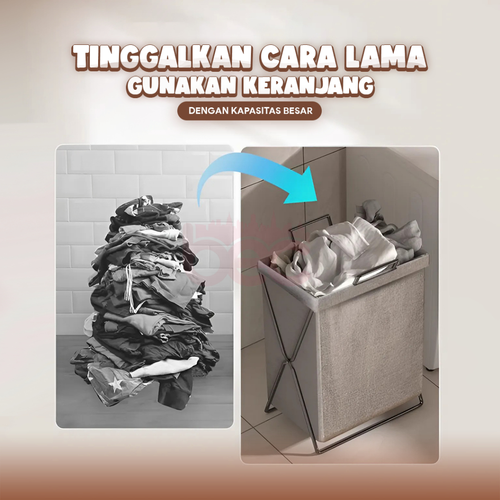 [BEC] Laundry Bag Lipat Keranjang Pakaian Kotor Keranjang Baju Lipat Tempat Cucian Baju Dengan Rangka