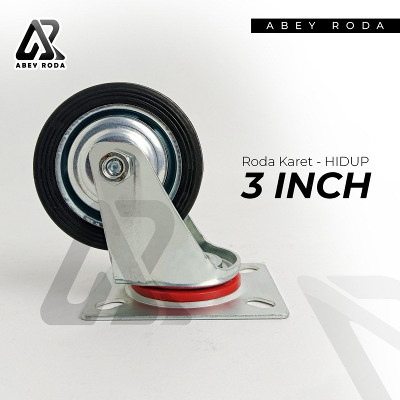 Roda Karet 3 Inch Putar (Hidup) 1 set (4pcs)
