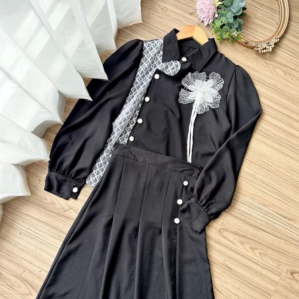 ONE SET AMANDA BLOUSE FLOWER ROK MAXI BAHAN CRINGKEL AIRFLOW LD 110