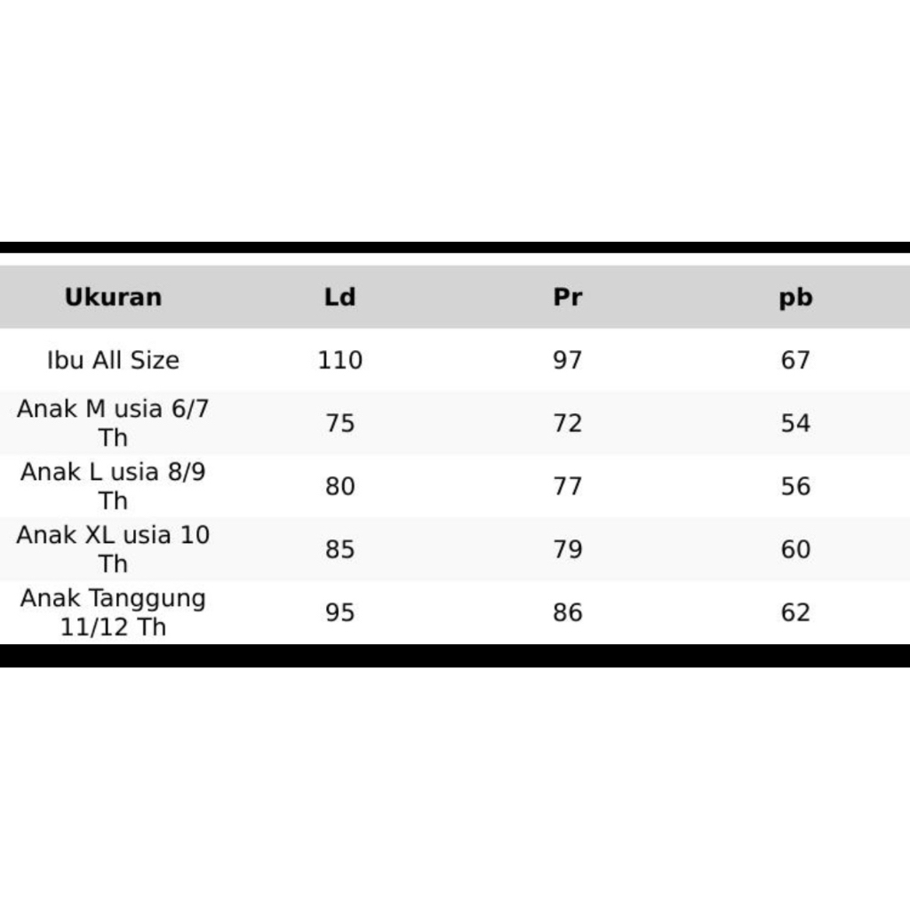 Ibu All Size, Anak M, Anak L, Anak Xl, Anak Xxl tanggung