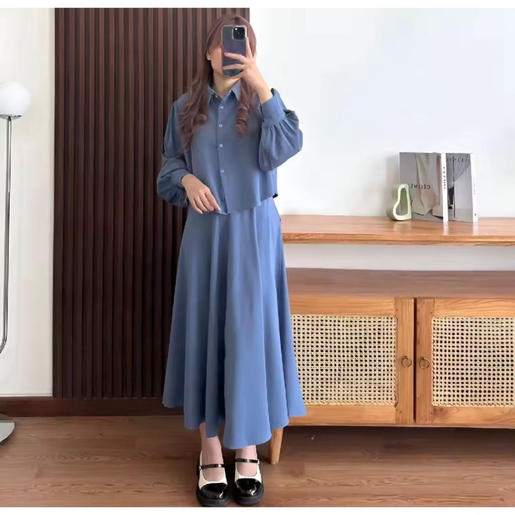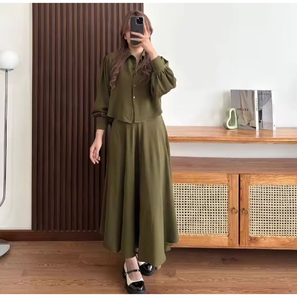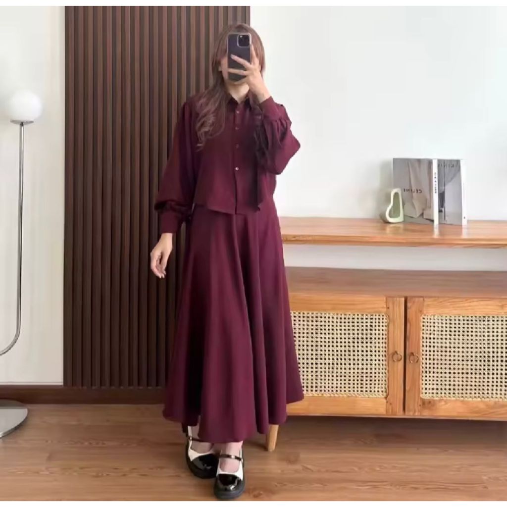One Set Crop Trendy Crinkle Airflow Wanita 2025 - Setelan Rok Terbaru Size M L XL Terlaris realpict