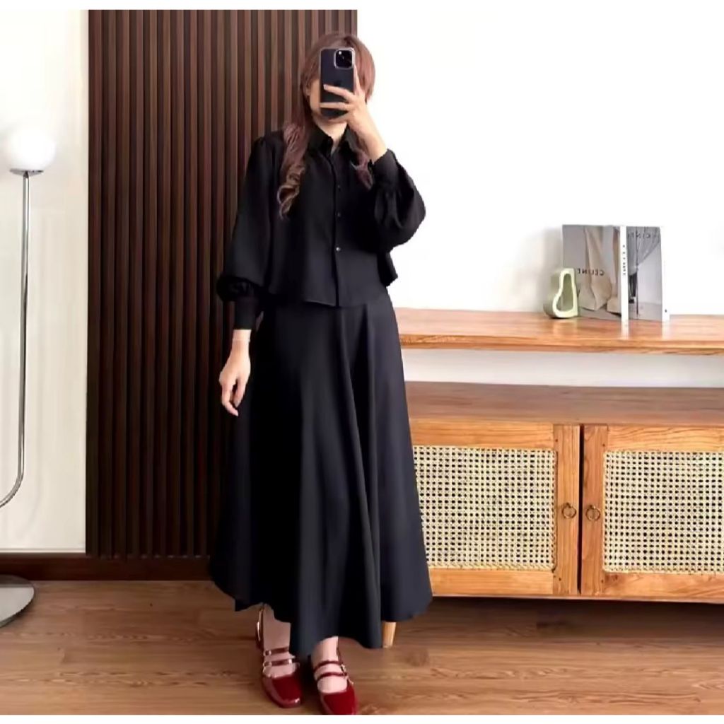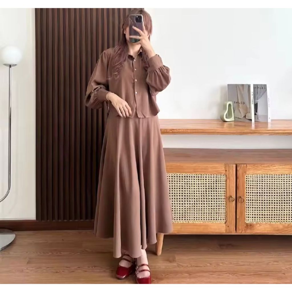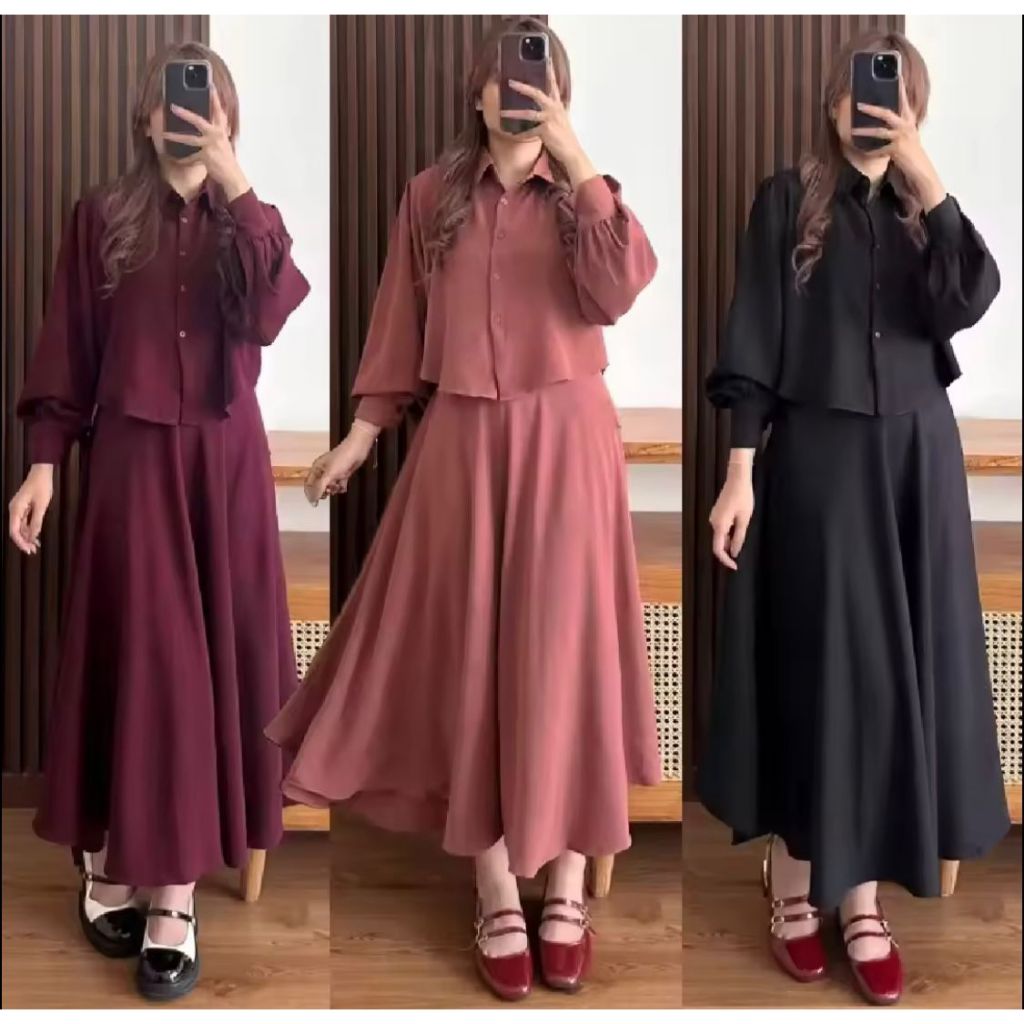 One Set Crop Trendy Crinkle Airflow Wanita 2025 - Setelan Rok Terbaru Size M L XL Terlaris realpict