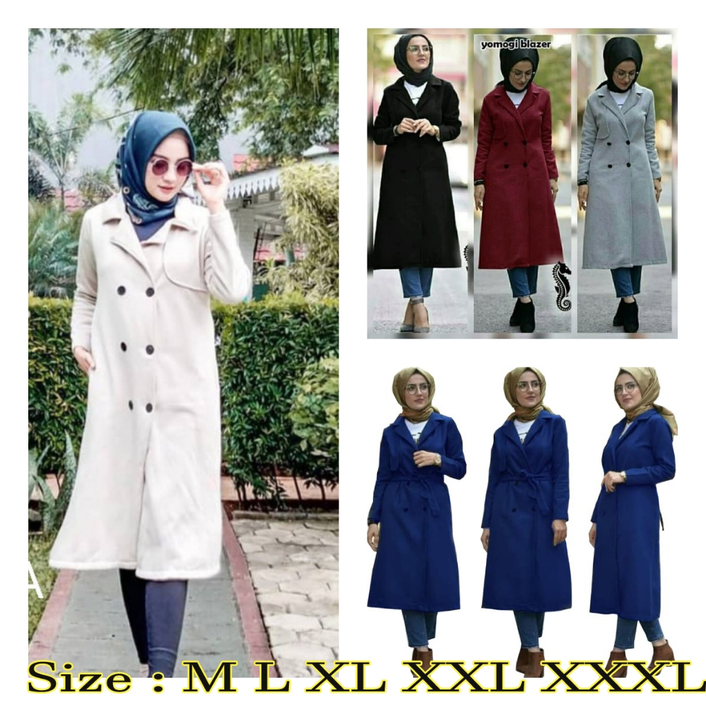 Long Coat Wanita Blazer Tebal Muslimah Premium